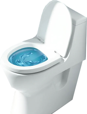 The tank refill valve restores the cistern water level and a small refill flow restores the bowl’s water level. The toilet returns to its ready state.